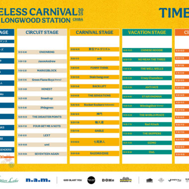 news タイムテーブル公開! 全61組のアーティストの出演時間とステージを記載したタイムテーブルを公開!!会場はステージ間の距離が非常に近く(最長徒歩3分、最短徒歩30秒)、高低差が少ない移動ストレスゼロなフラットな設計になっております!ジャンルを超えて来場者の方に新し... 2025.11.05 news